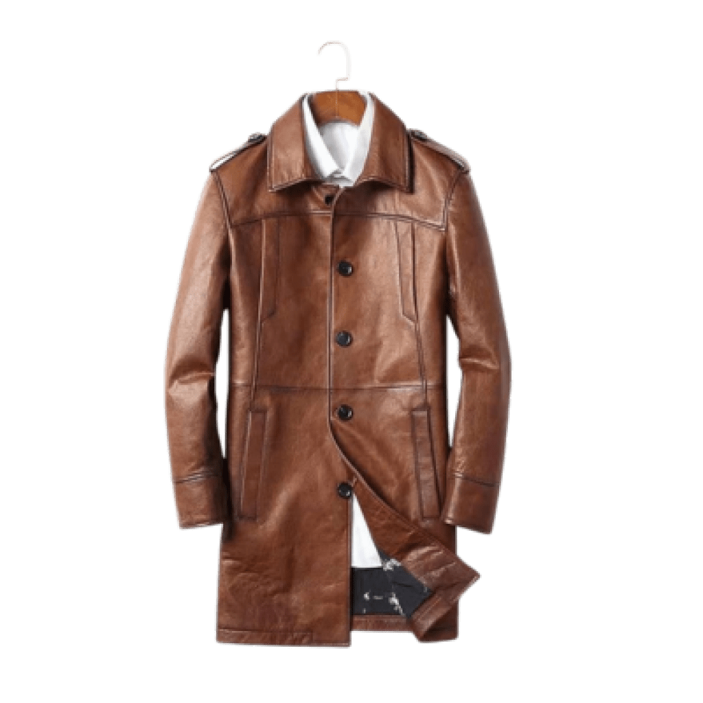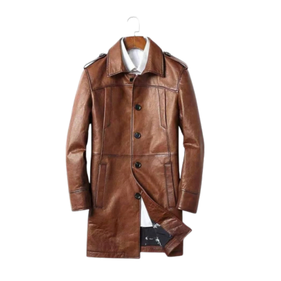 CHUNYU Leren herenkleding Lange revers Imitatieleren jas Windjack Herenjas