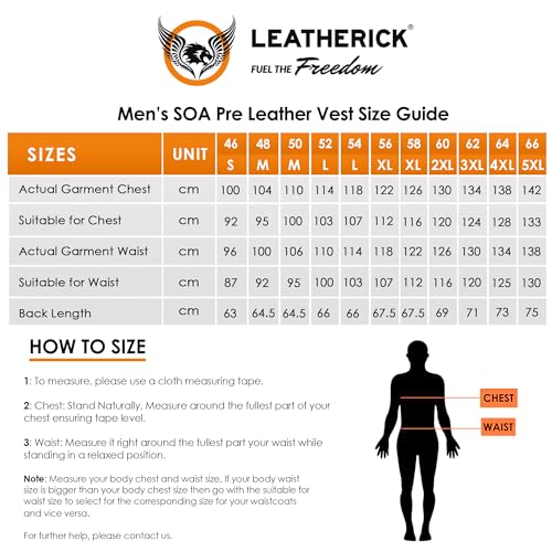 Onze zwarte leren bikervesten voor heren bieden een 100% prijs-kwaliteitsverhouding. Volg de maattabel in de afbeeldingen om je vestmaat beter te begrijpen. Koop zelfbewust bij Leatherick. Sinds 2017 hebben wij duizenden tevreden klanten bediend, zoals in heel Europa en Groot-Brittannië.