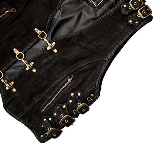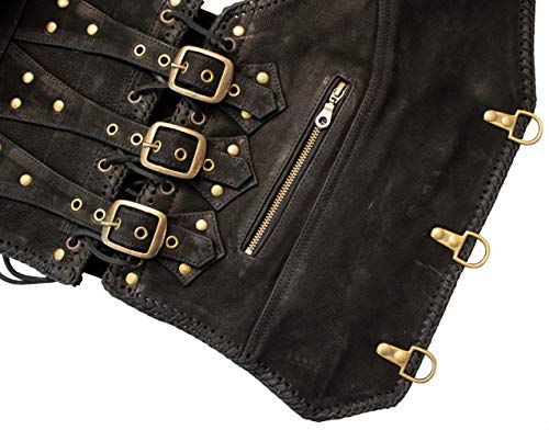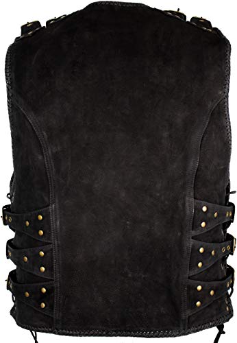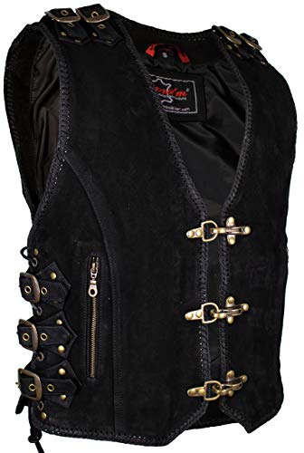 Specification: MDM Büffel Nubuk mat zwart, gespen, leren vest met messing gespen