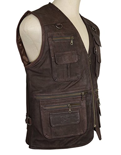 Specification: MDM Jachtvest voor heren, leren vest, bruin