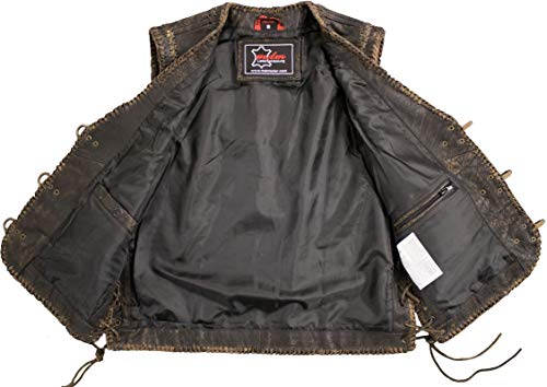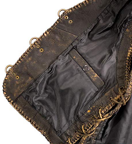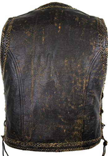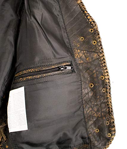 Specification: MDM Vintage leren herenvest met dubbel gevlochten leren zomen