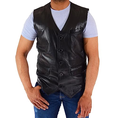 Parker mannen echt leer traditionele vest met knoopsluiting zwart