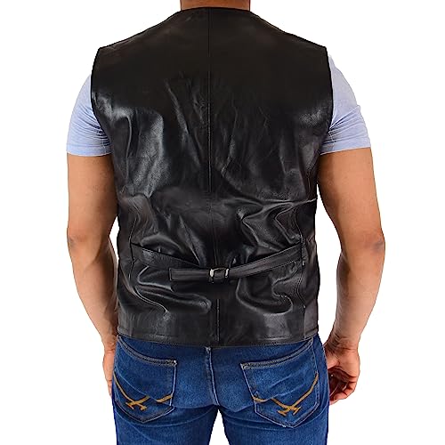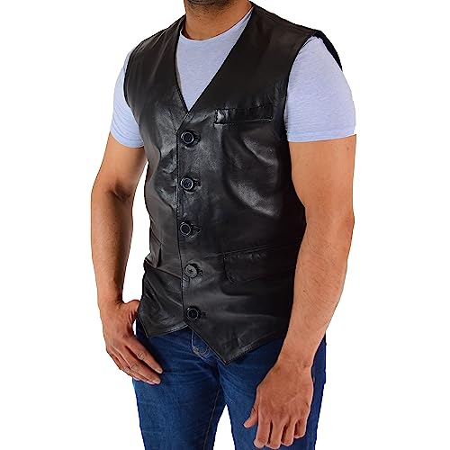 Specification: Parker mannen echt leer traditionele vest met knoopsluiting zwart