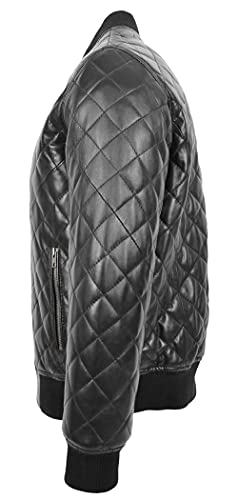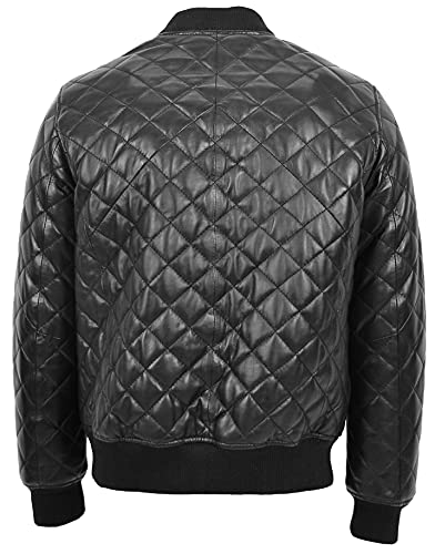Mens echt lederen bommenwerper jas gewatteerde Varsity stijl Warren zwart