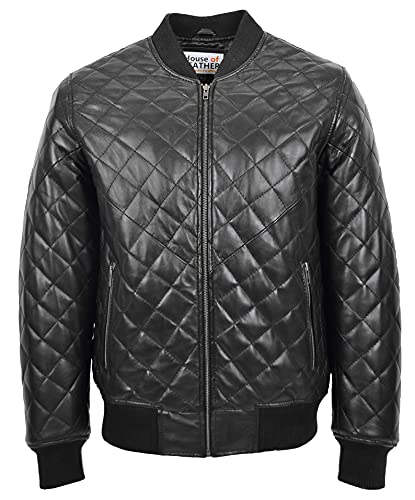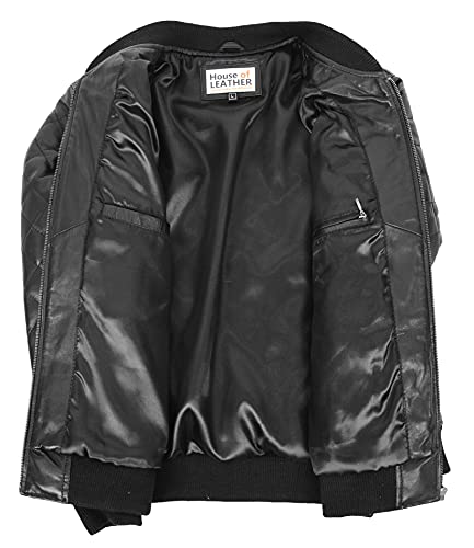 Specification: Mens echt lederen bommenwerper jas gewatteerde Varsity stijl Warren zwart