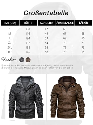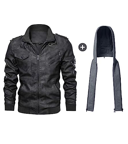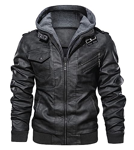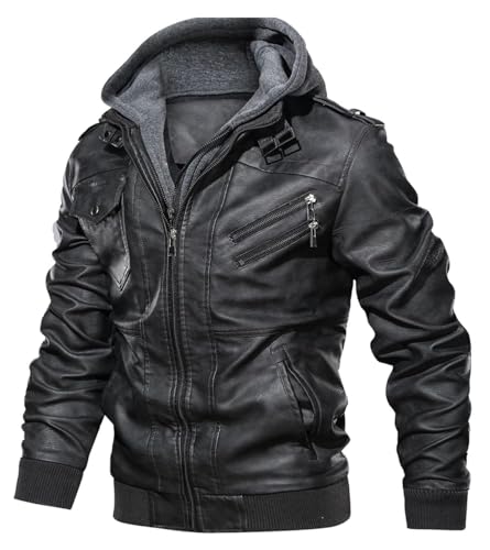 Specification: Uusollecy Leren herenjas met afneembare capuchon, leren jas met capuchon, zwart, XL