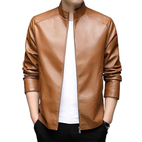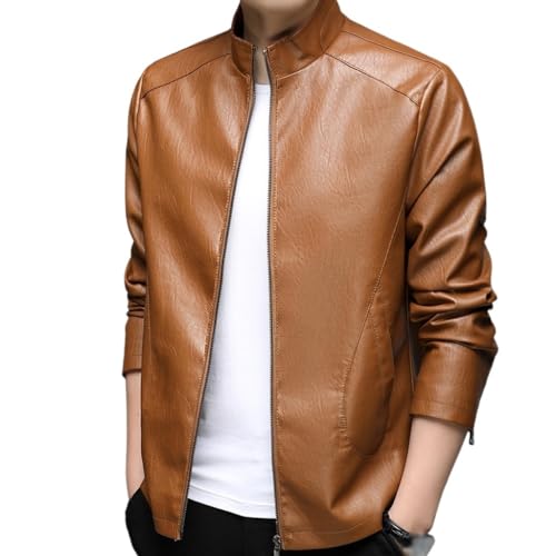 CHUNYU Casual mode klassieke faux pu mode leren jas heren bruine jassen herenkleding (Color : D, Size : 4XL code)