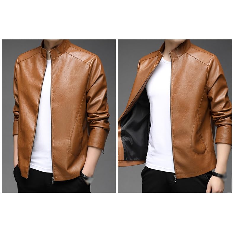 Specification: CHUNYU Casual mode klassieke faux pu mode leren jas heren bruine jassen herenkleding (Color : D, Size : 4XL code)
