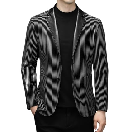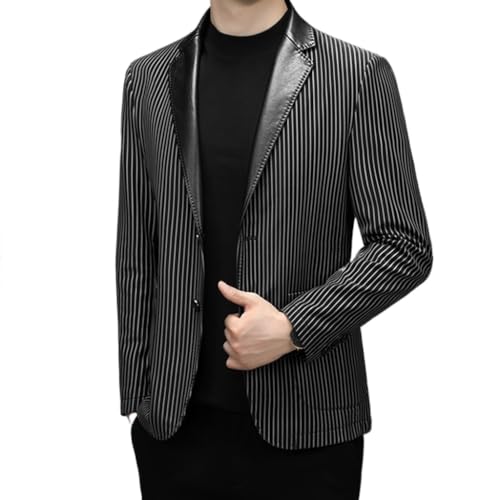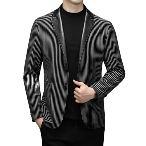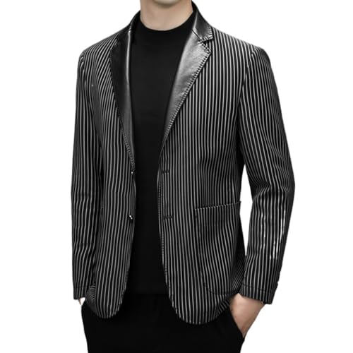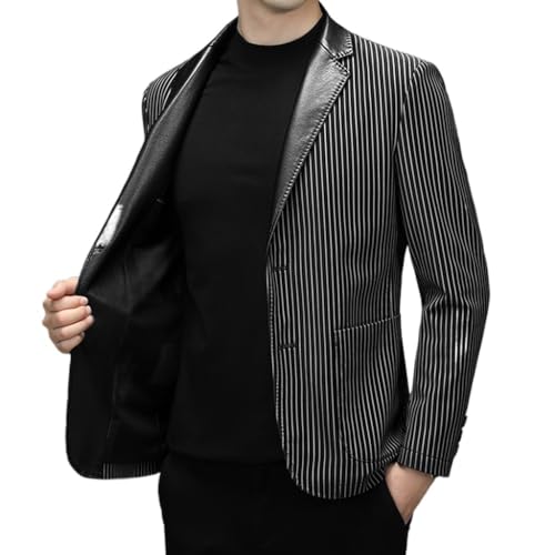 Specification: CHUNYU Herenpak leren jas Herfst vrije tijd Pu verticaal gestreept pak Koreaanse mode leren jas herenjas (Color : D, Size : XXL-185)