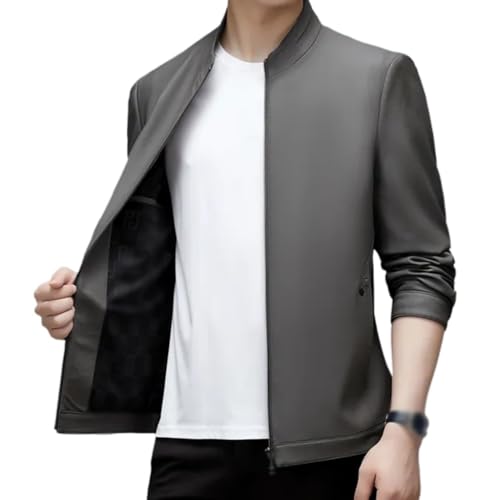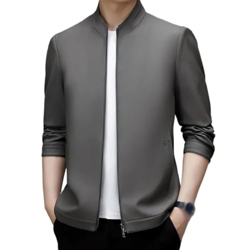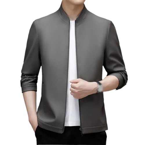 Herfst lederen kleding Heren schapenvacht leren jas met opstaande kraag Dunne vrijetijdsjas Knappe jas.