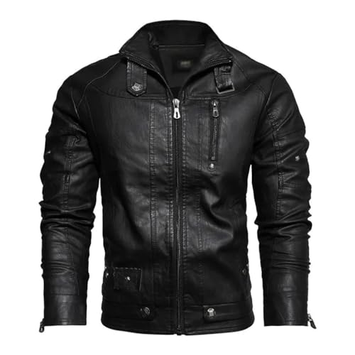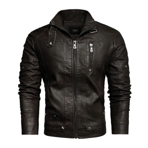CHUNYU PU Casual leren jas Heren Fleece Slim Fit Bovenkleding Heren Effen lederen jassen Herenkleding (Color : D, Size : 5XL)