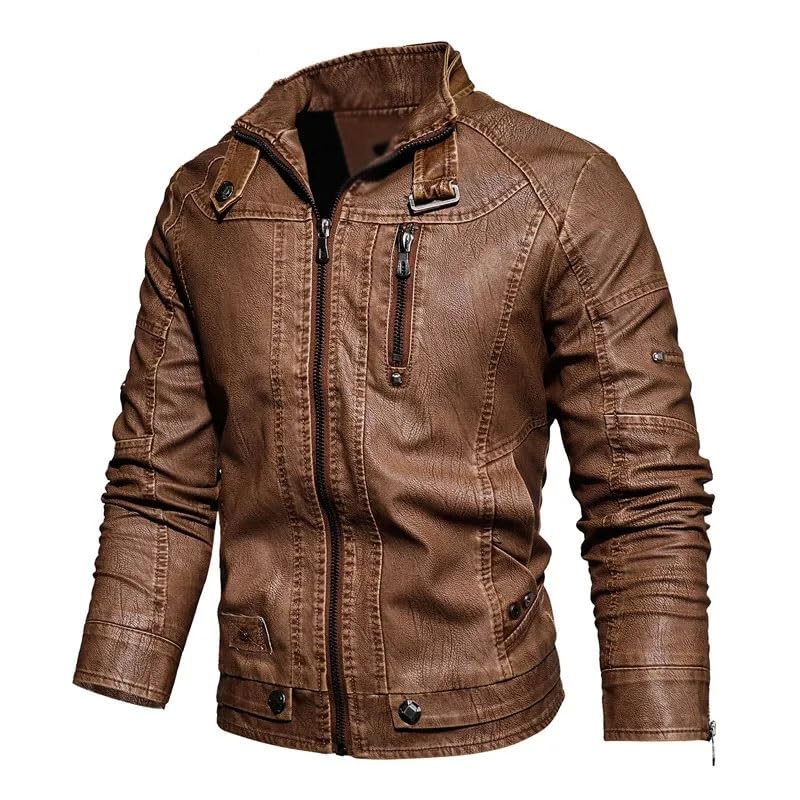 Specification: CHUNYU PU Casual leren jas Heren Fleece Slim Fit Bovenkleding Heren Effen lederen jassen Herenkleding (Color : D, Size : 5XL)